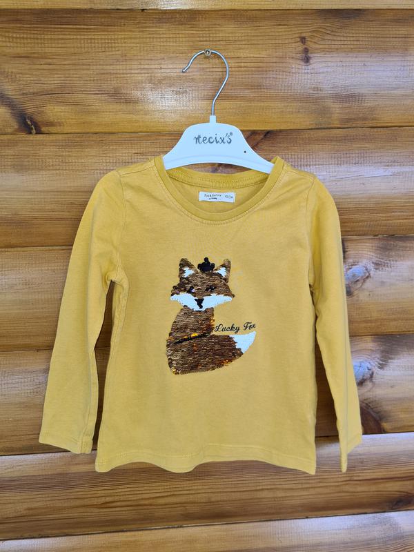 Регланчик SinSay с пайетками р.92 без дефектов в отличном состоянии Замеры: длина - 36см рукав от плеч.шва - 33см ПОГ - 27см плечи - 20см