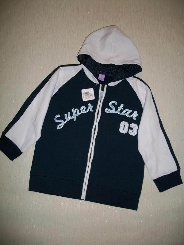 Стильная кофта толстовка от Jac, новая - сток, с бирками. Кофта на флисе. Цвет - темно синий. Подойдет на 11-12 лет. Размер: 152. Длина - 53см; Длина рукава от горловины - 51см, по внутреннему шву - 37см; ПОГ - 44см; ПО по низу - 42см; Состав: 35% коттон+65%полиестер Доставка: 100% оплата на карт-счет. Вещи возврату не подлежат. Новая почта и Укрпочта