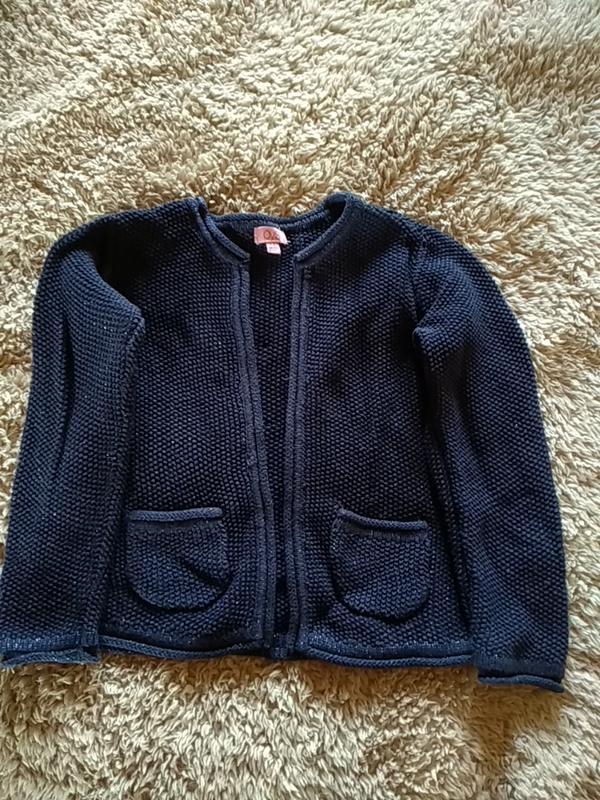 Трикотажна кофтинка темно синього кольору.Може бути на перший клас а школу замість жакета.