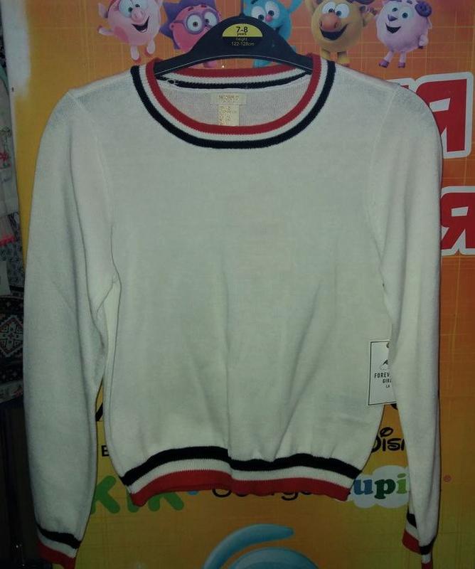 Джемпер для девочки FOREVER 21 на 7-8 лет на р.128. длина - 43 см, полуобхват под мышками - 34 см, длина рукава - 50 см, длина плеча - 6 см, по спинке от плеча к плечу - 28 см.