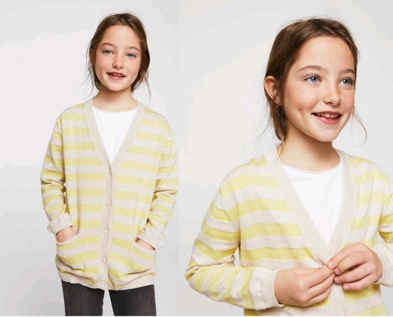 Кардиган для девочки MANGO на 5-6 лет на р.116. Полосатый дизайн . Металлические детали . Длинные рукава . Два накладных кармана спереди . Застежка на пуговицы спереди . Ребристая отделка . СОСТАВ: 91% ХЛОПОК, 9% ПОЛИЭСТЕР. РЕЗКА: 88% ХЛОПОК, 12% ПОЛИАМИД.