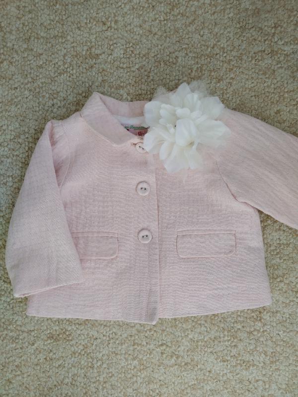 Суперский пиджачок на коттоновом подкладе для модной ляли) На пиджаке есть два кармашка с клапанами, три пуговки. Украшение цветок- в подарок🌼 Замеры: ДИ-28 ДР-23 Ширина-30( полуобхв) Размер- на годик) Цвет близкий к реальному на первом фото.