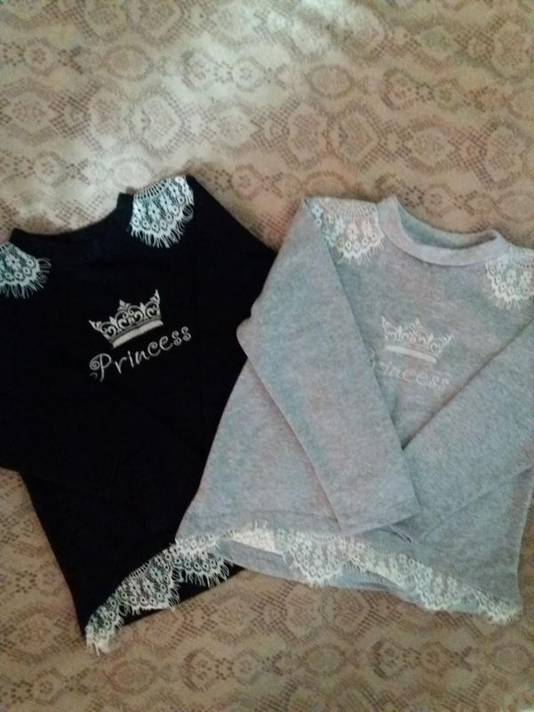 Новий набір кофтинок з невеликим начесиком "Принцеса" Тканина футер начіс!Розмір вказаний 30,краще орієнтуватися по замірам! Чорний: Довжина спереду до гіпюру 35 см Довжина ззаду 40 см Довжина рукава 35 см Сірий: Довжина спереду до гіпюру 35 см Довжина ззаду 41 см Довжина рукава 36,5 см Ціна набору 280 грн,ціна за один 150 грн!