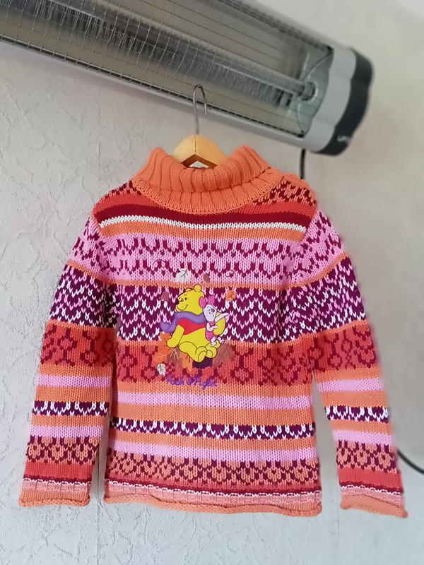 Продам стильный, красочный, очень тёплый свитер вязанный на девочку размер 110. Состояние отличное. Из нюансов присутствуют маленькие катышки. А в остальном всё отлично. Состав: 100% Acrylic. Замеры: длина 45 см, полу обхват подмышками 35 см, длина рукава от плеча 38 см, полу обхват в районе талии 33 см ( немного ещё тянется), длина воротника ( высота 12 см) когда подворачивается получается хомутом, очень удобно и ребёнку нигде не поддует, по плечам 30 см, по низу свитер 35 см ( но ещё тянется).