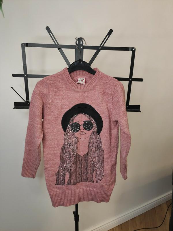 Теплий светрик на дівчинку, розмір 8-9років, повномірний, дуже теплий, не кусючий, в складі 10% вовни довжина 53 см рукав він плеча 40см пів обх грудей 32 всі камінці на місці