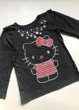 Легенькая кофточка Hello Kitty. Приятная к телу. Рисунок с блестками. Размер-3Т, на 2-3 года. Замеры: длина-37 см, рукав (от плеча)-34 см, ширина под рукавами-27 см. Б/у в отличном состоянии
