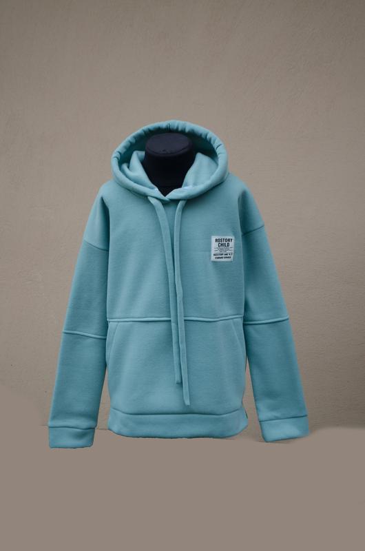 Тепла кофта з капюшоном та карманом бірюзового кольору