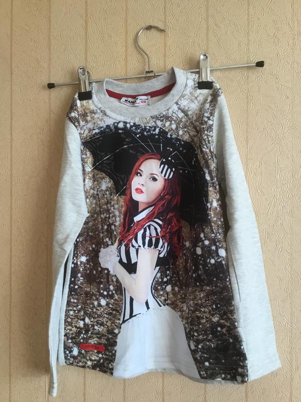 Очень красивый свитшот для девочки, отличного качества, производства Турции, дорогая турецкая фирма Ванекс. Спинка идёт на флисе, ткань плотный трикотаж. Остался размер на рост 122. Очень мягкий и приятный к телу. Новый с биркой, цена снижена.