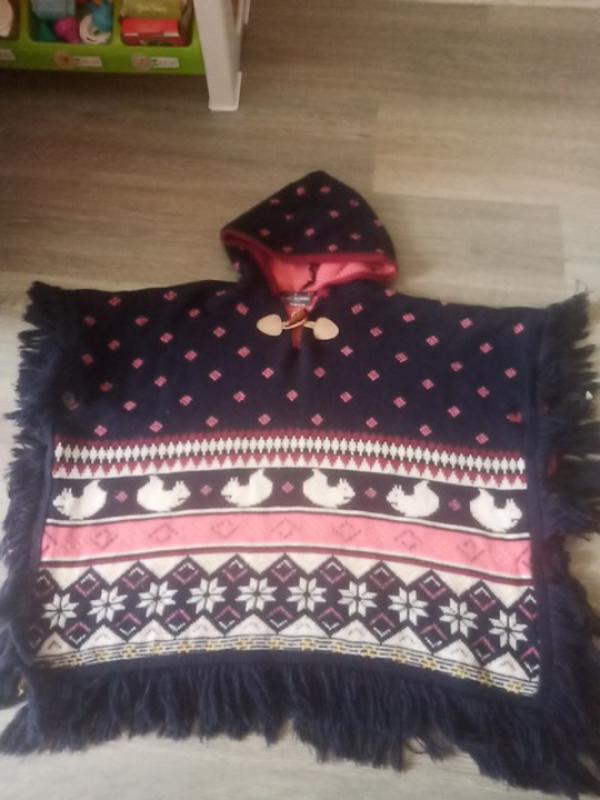 на 8-9лет, длинна 50 см + 10 см бахромы. Под мышками есть пуговички, чтобы хорошо держалось