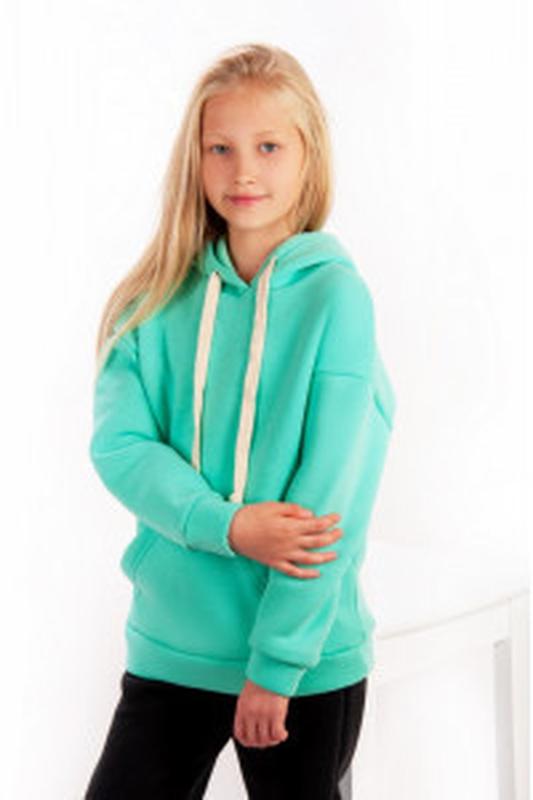 Худі крою oversize для дівчат-підлітків з трьохниткового футера з щільним начосом. Модель з довгими рукавами на манжетах, капюшоном, кишенею-кенгуру, виконана з однотонного полотна різних кольорів, з широким шнурком-канатом в капюшоні. Худі відмінно комбінується з штанами в тон або теплими лосинами, що дозволяє створювати різні образи. Можна носити прохолодною осінню або взимку під верхній одяг. Полотно щільне, має гарні теплоізоляційні властивості, при правильному догляді може давати незначну усадку після прання. Полотно: трьохнитковий футер з начосом Склад: 70% бавовна, 30% ПЕ Рекомендації по догляду: прати при температурі не більше 30 ° C. Допускається машинне прання в режимі ""ручне"" або ""делікатне"".