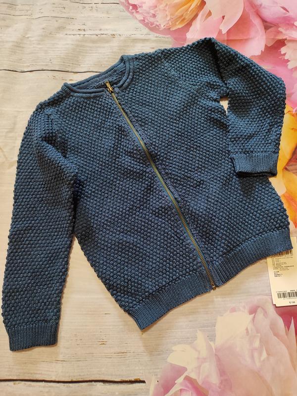 Теплая кофтинка на молнии темно синего цвета, с люрексовой нитью, на бирке 104 рост состав: 90% хлопок, 10% полиэстер бренд name it Замеры рукав от горловины 45, ширина 34, длина по спинке 43