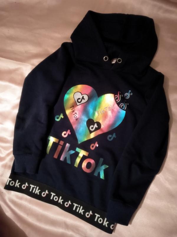 Батник с популярным принтом TikTok в очень хорошем состоянии, нам просто стал маленьким. Очень тепленький с начёсом. пог33см пот 32см рукава 41см плечи 27.5см длина по спинке 47см ширина низа 31.5см(на резинке)