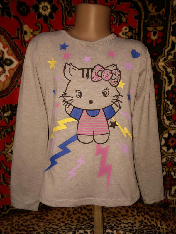 Классный хлопковый трикотажный реглан Kitty. Размер 10-12 лет. Длина 46, рукав 45, ширина 34.5 (тянется). Состояние в общем хорошее, есть немного катышки, нет нескольких стразиков.