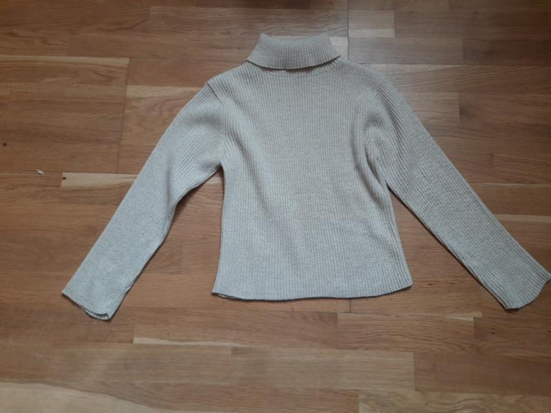 Супер гольфик, рост 116-122, вязаний трикотаж с золотой ниткой. Без дефектов. Длина 40 см, между руками 35 см, рукав 42 см. Хорошо тянется и приятен к телу. Идеален для школы.