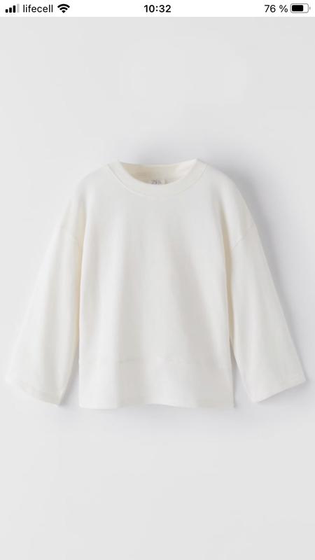 Новий лонгслив Zara 7 років. Колір cream ( Айворі) Рукав трохи нижче ліктя 100% бавовна Завмер Ширина 42(84) Довжина 47 Рукав 32 Плечі 14 Плечі спущені 43 Ширина рукав 14,2(28,4) Оплата : · На картку Приватбанку Доставка Укрпоштою - при отриманні Нової Пошти при отриманні післяплата можливий при передоплаті в 120 грн