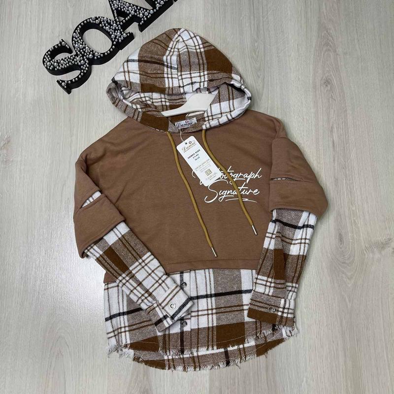 Худі трикотаж двухнитка + клетка Заміри⬇️⬇️⬇️ 6р рукав від шиї 57 ширина 44 довжина 50 8р рукав від шиї 58 ширина 48 довжина 53 10р рукав від шиї 60 ширина 48 довжина 55 12р рукав від шиї 62 довжина 57 довжина 57 артsauliza