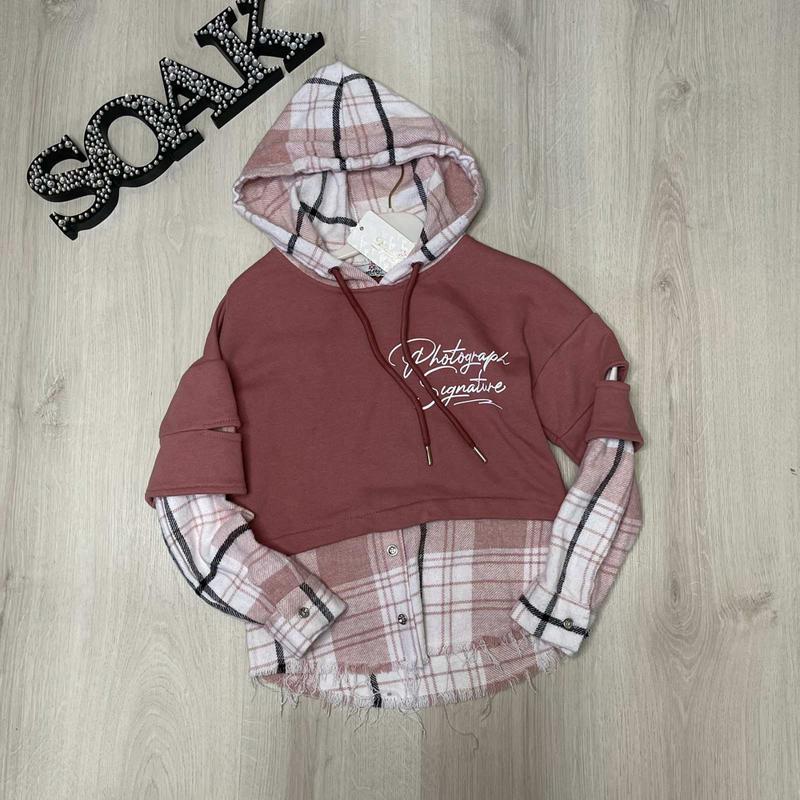 Худі трикотаж двухнитка + клетка Заміри⬇️⬇️⬇️ 6р рукав від шиї 57 ширина 44 довжина 50 8р рукав від шиї 58 ширина 48 довжина 53 10р рукав від шиї 60 ширина 48 довжина 55 12р рукав від шиї 62 довжина 57 довжина 57 артsauliza