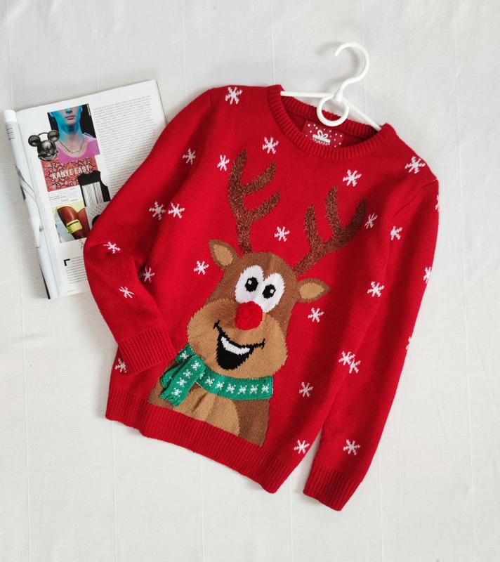 яскравий червоний светр від Primark для дівчинки/ хлопчика 9/10 років на зріст 140 см, З грудей 40 см, довжина 54 см, довжина рукава 50 см