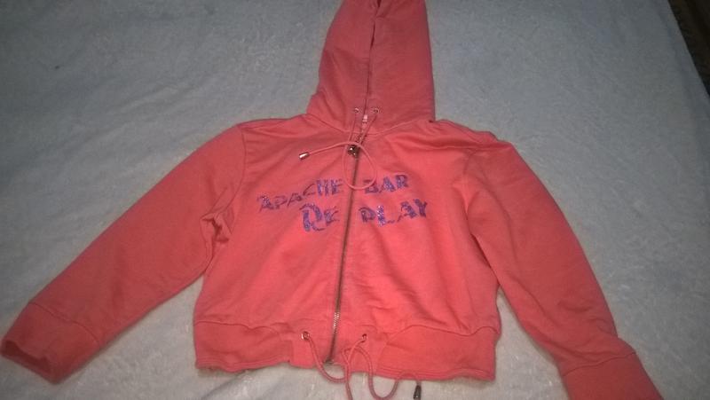 Кофта на молнии с капюшоном , цвет оранж. Замеры: дл.спины - 42 см., дл.рук.-43 см., п/об.груди 42 см. Отправка новой и укрпочтой.