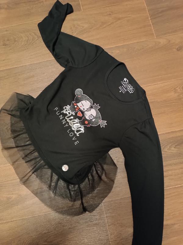 Идеальная. Колокольчикофточка с пайетками и фатиновым рюшем модницы 6 - 7 лет, футболочный трикотаж ( 45 вискоза + 45 полиэстр + 10 спандекс). Длина 46 см с рюшем, объем 70 см, длина рукава 41 см, плечи 31 см. Состав: 45 вискоза, 45 полиэстр, 10 спандекс..