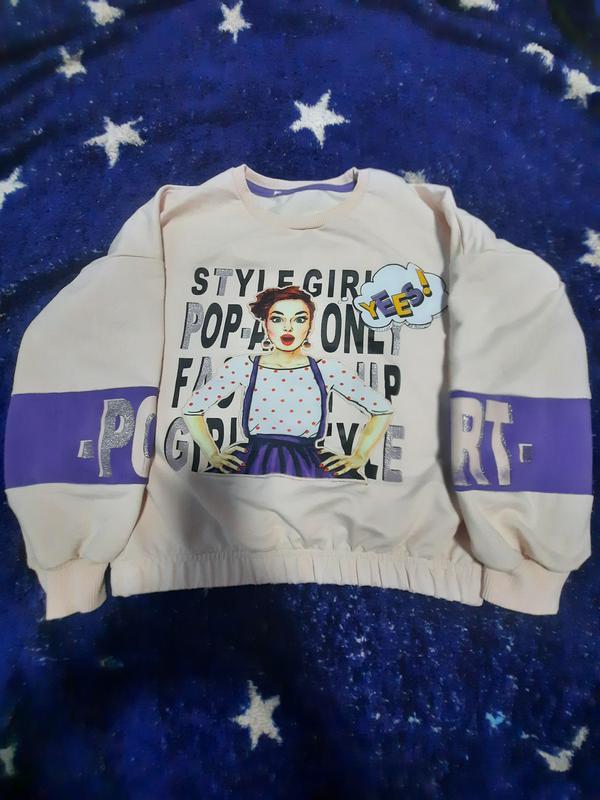 свитшот для девочки, свободный, укороченый, ПОГ47, ПОТ33,ДЛИНА ОТ ПЛЕЧА44, ДЛИНА РУКАВА ОТ ШЕИ54, производитель Турция
