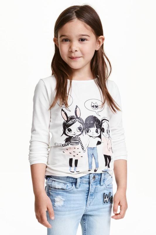 Класний реглан H&M Стан: новий з біркою. Колір: білий з принтом з переливом. Склад: 90% бавовна, 5% еластан, 5% віскоза. Розміри в наявності: 110/116. Ціна остаточна. Розмір 110/116: Довжина від плеча вниз 41,5 Ширина плечей 25 ПОГ 28 Рукавчик від плеча 40