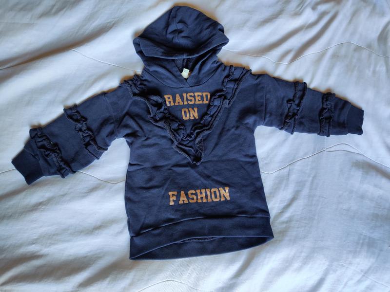 Туничка с капюшоном для девочки с объемными оборками на рукавах и груди. будет на возраст 2-3,6 года.