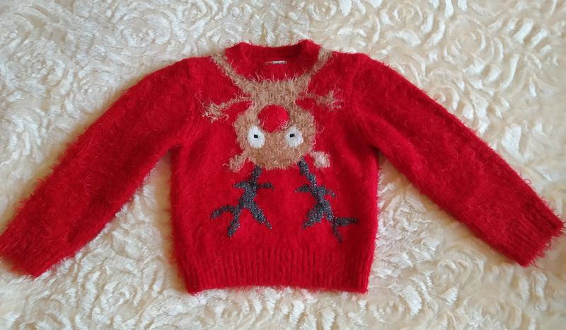 Новорічний, різдвяний з підсвіткою світер-травка Next з люрексовою ниткою на олені. М'який і приємний на дотик. Носик світиться при нажиманні. Вік 3-4 роки. ріст 104 см. (10)