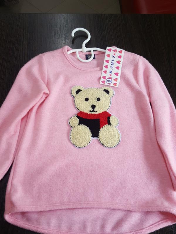 Кофта подовжена спинка довша, перед кородший. Мішка пришитий. На ріст 92см Довжина кофти 43см. Довжина рукава 32см. На ріст 104 Довжина кофти 46см. Довжина рукава 35см.
