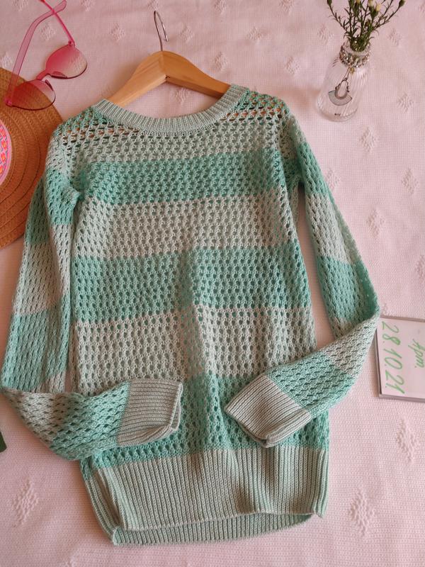 м'ятно - зелений светрик ажурна в'язка hm 8 10 ширина 36 50 рукав 50 довжина по спинці 51 натуральна нитка