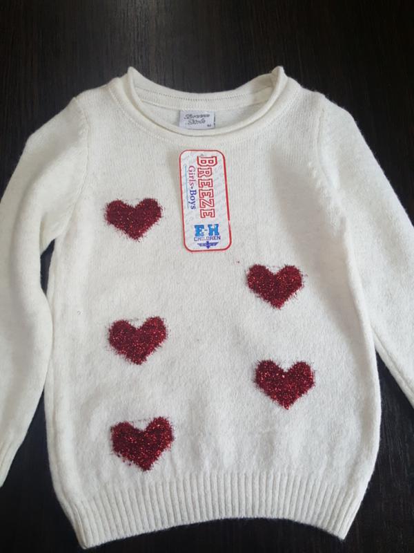Кофта в'язана з нашитими вязаними сердечками❤ На ріст 92см Довжина кофти 39див. Довжина рукава 36см.
