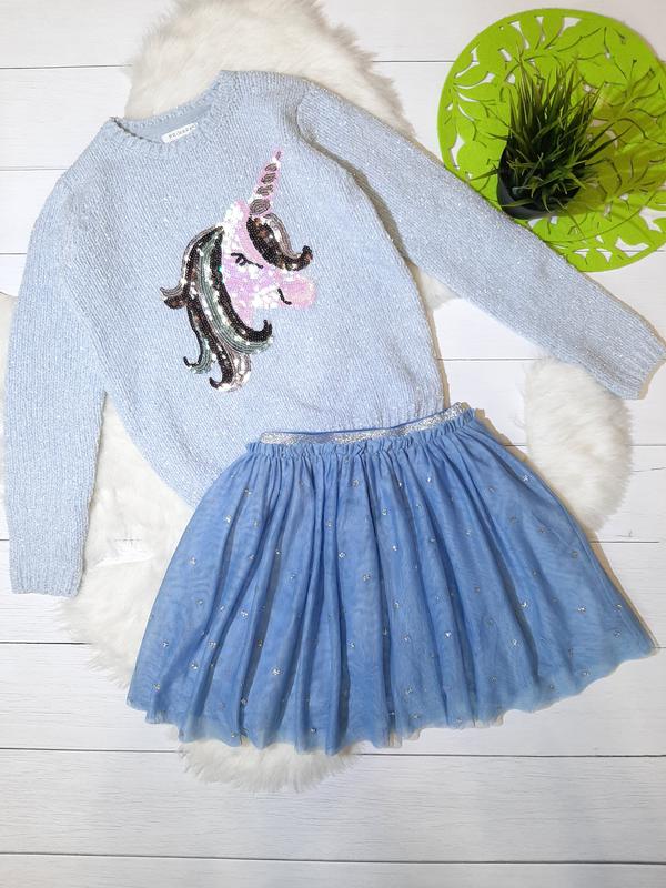 Красивый комплект на девочку плюшевый нежный свечер с люрексовой нитью и юбочка в блестках