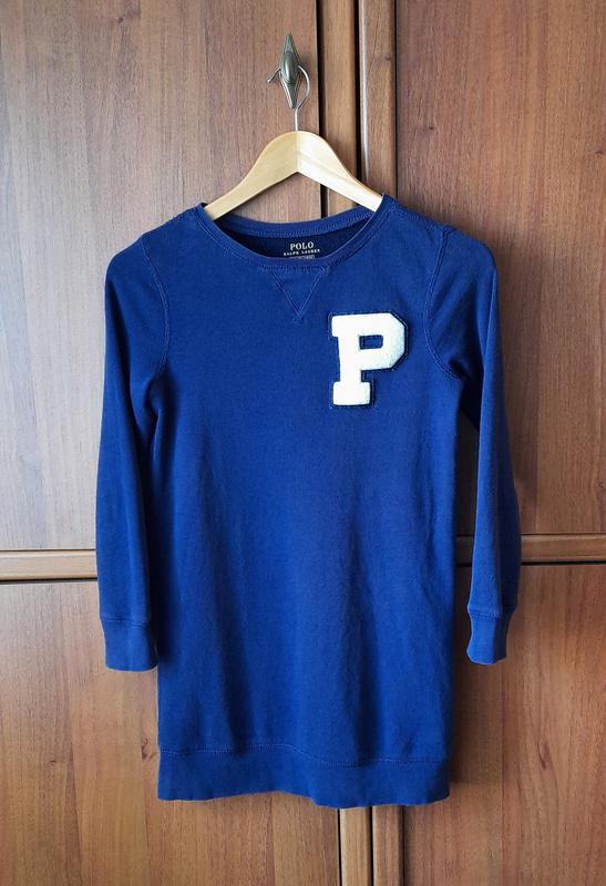 Синій світшот-сукня-туніка Polo Ralph Lauren. Розмір підлітковий M [8-10 років]/жіночий XS-S. Ширина в зоні плечей - 36 см, ширина в зоні грудей - 43 см, довжина рукава - 52.5 см, довжина - 72 см.