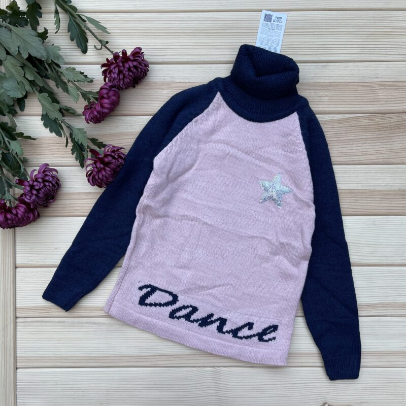 Свитер про-ва Турция- не заменимая вещь как для школы- так и на каждый день Мягкий, качество на высоте! Красивая вязка! Спереди украшен нашивкой -звездой из пайеток. 100 % акрил ✔ Размеры: 110-116- рук. от шеи-51 дл-48 122-128- 55/53 134-140- 60/57