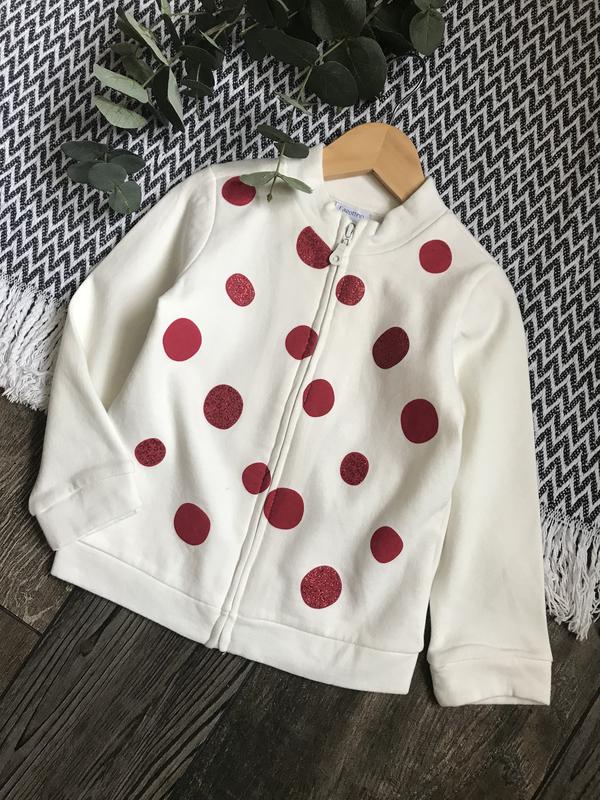 🌿Fagottino🌿Italy🇮🇹 Зручна тепла кофтинка на замочку приємного молочного кольору з великими горохами, деякі з них виблискують. Вік ✅2-3р/Зріст 98см