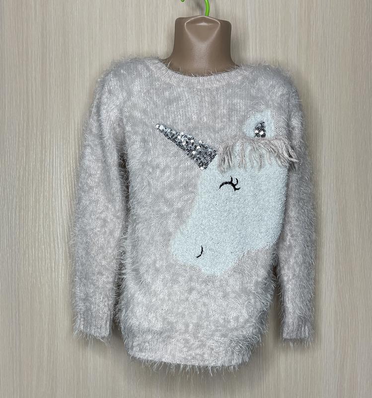 Мягкий джемпер травка с единорогом. Состояние идеал 7-8 лет Длина 48. ПОГ 36. Рукав 41