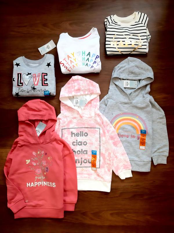 Тільки сьогодні 205 грн!!! Стильні теплі світшоти для маленьких красунечок. Відмінна якість від відомого іспанського бренду Primark. Переживають десятки праннів без втрати кольору, деформації (перевірено особисто). Чудовий варіант в садочок для активних дівчаток. В моїх оголошеннях можна підібрати теплі штани, разом дешевше. По розмірах рожева з квітами 3-4 р. немає біла 3-4 р. 104 см сіра з веселкою 3-4 р. 104 см та 2-3 р. 98 см. сіра з написом love 3-4 р. немає та 1,5 -2 р. 92 см рожева з написом 2-3 р. 98 см полосата 12-18 м. 86 см. Для хлопчика сіра з діно 18-24, інші 2-3 р.