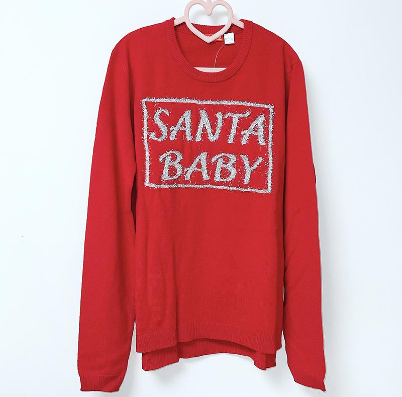 Красный новогодний свитер с надписью из нитки травка серебряного цвета Возраст указан 12/14 лет( можно и старше) Замеры уточняйте