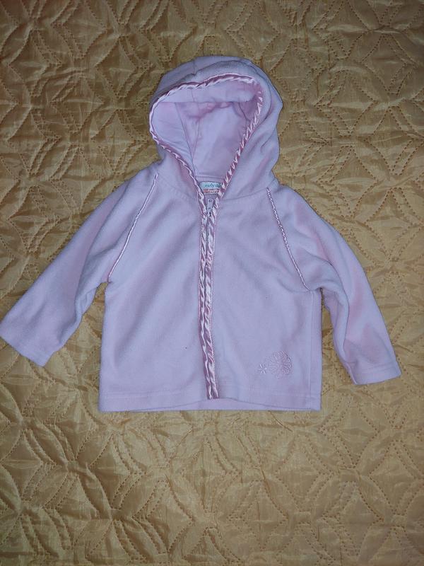 Кофта нежно розового цвета с капюшоном флисовая. Молния рабочая. Длина по спинке 31 см, длина рукава 21 см. Дополнительные фото по запросу. Пересылаю