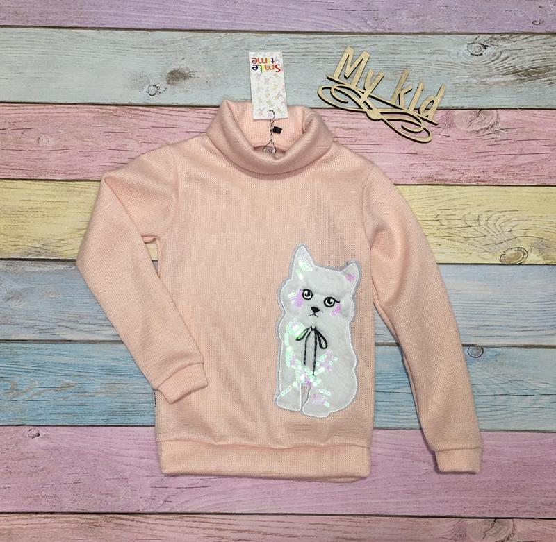 Светр для дівчинки, дитяча кофта з в'язаного полотна. У складі 70% віскози та 30% акрилу. Светр практичний і красивий, не кашлатається і не колеться, плечові шви доповнені силіконовою стрічкою, яка запобігає деформації виробу після прання. Високий комір стійка з підворотом захистить у холодну пору року. Рукави і низ светра на манжетах. Светр доповнений гарною нашивкою. розміри 98-122 ціна 240 грн 98-довжина 38 см. рукав 36 см. плечі 25 см. напівобхват грудей 27 см 104-довжина 41 см. рукав 39 см. плечі 26 см. напівобхват грудей 28 см 110-довжина 43 см. рукав 41 см. плечі 27 см. напівобхват грудей 29 см 116-довжина 45 см. рукав 43 см. плечі 28 см. напівобхват грудей 31 см 122-довжина 47 см. рукав 45 см. плечі 31 см. напівобхват грудей 34 см