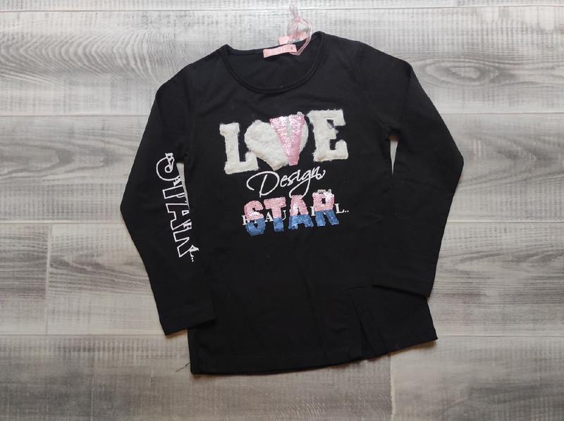 Стильный реглан для девочек украшен абстрактным принтом, Производитель Венгрия. 8 - черный рукав от плеча 43см, ПОГ 32,5см