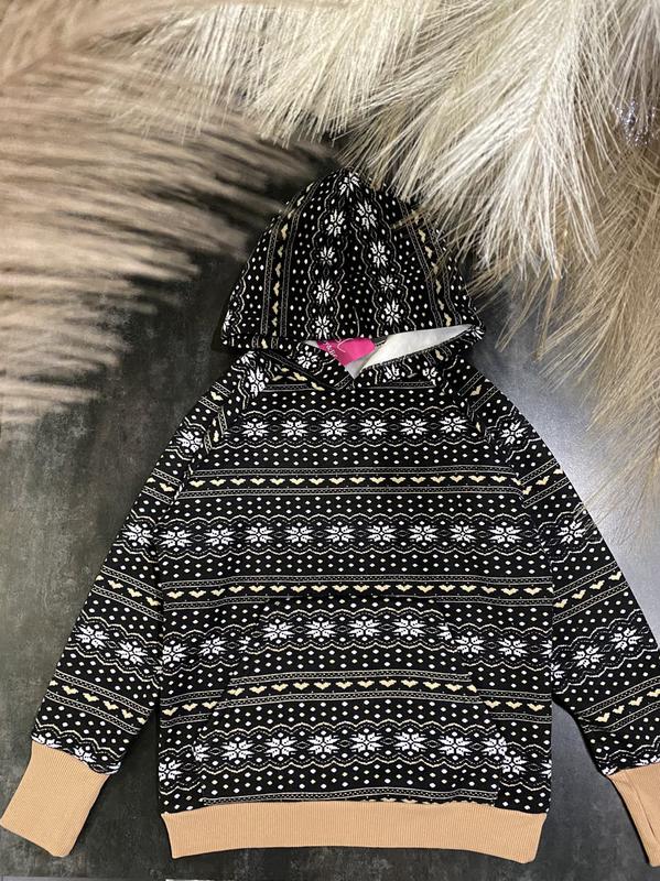 Худі Новорічні 🌸🌸🌸 Тканина-турецький трикотаж на «меху» В манжеті рукава є виріз для великого пальця Замеры: 134 дл-56см рук-63см пог-46см 140 дл-60см рук-67см пог-47см 146 дл-61см рук-70см пог-48см 152 дл-63см рук-73см пог-47см 158 дл-70см рук-75см пог-49см 164 дл-71см рук77см пог-50см артlana