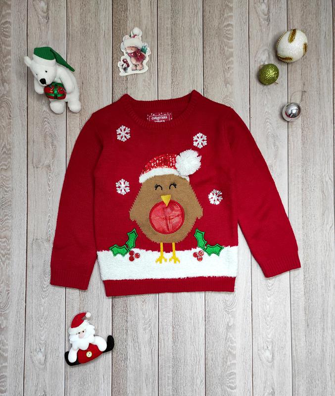 Красивый новогодний свитерок на 4-5 лет. Длина 43, рукав 36