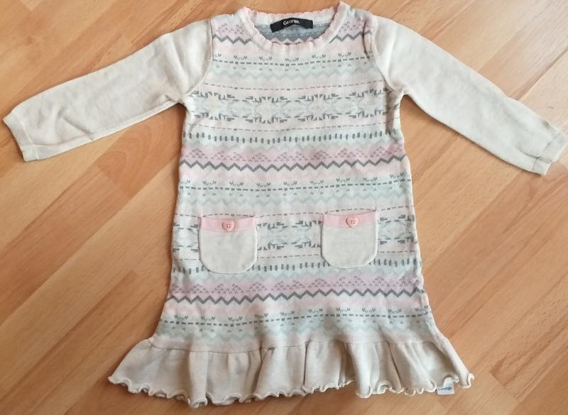Туніка -плаття на ріст 80-86 см в дуже хорошому стані без дефектів та пошкоджень. Заміри Довжина 49 см Ширина 29 см Рукав 29/34 см