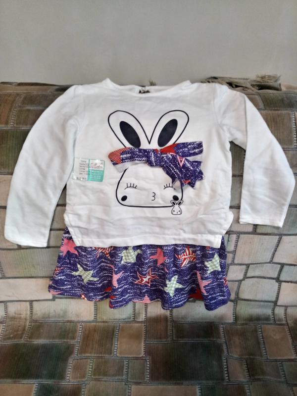 Плаття-туніка для дівчинки. Нова! Принт - накатка+пришивний бантик. всередині вшита майка. дуже приємне до тіла! Комбінована тканина: Верх - футер(двунитка з начосом) Низ - інтерлок пенье Склад: 100%Хлопок всі заміри зроблені вручну, можлива похибка 1см. р.28 (92-98) плечі 26см. напівобхват грудей 29см. довжина рукава 30см. довжина виробу 44см.