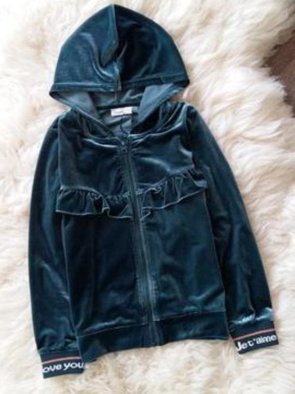 Шикарна велюрова кофточка для дівчинки Name it. Кофта на манжеті. Колір бірюза.Дуже стильна, практична і зручна. Є такі ж штанці. З биркою в оригінальній упаковці. Відправляю новою поштою або самовивіз Олександрія. Всі заміри надам