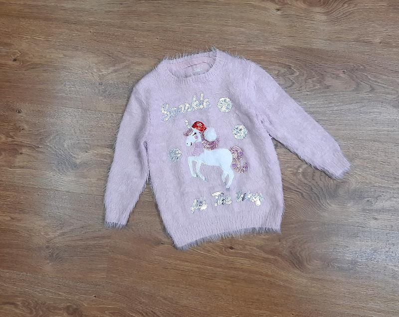 Классный новогодний свитер с паетками. Длинна 40 см, Рукав от ворота 38 см, ширина 32 см. Состояние супер.