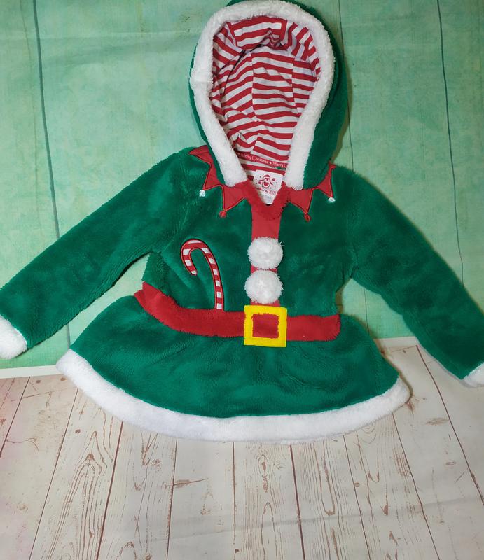 Яркое новогоднее платьице с капюшоном. Материал -велсофт
