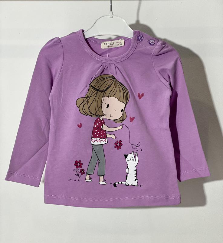 Реглан для девочки сиреневого цвета, спереди и сзади накатка, застежка пуговицы на одном плече. Состав: 95 хлопок, 5 эластан.