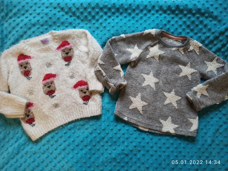 Две кофты для девочки 92-98 одним лотом. Свитер с птичками-материал травка, звездочки-флис. В очень хорошем состоянии, цена за две вместе.